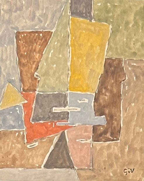 Geer van Velde arranges forms the way others arrange words. Carefully. Without urgency. This small gouache on paper, a few colors, a few angles, doesn't try to impress. It fits in the hand. It holds in time. There's something about works on paper that I keep coming back to: they don't need an entire wall to exist.