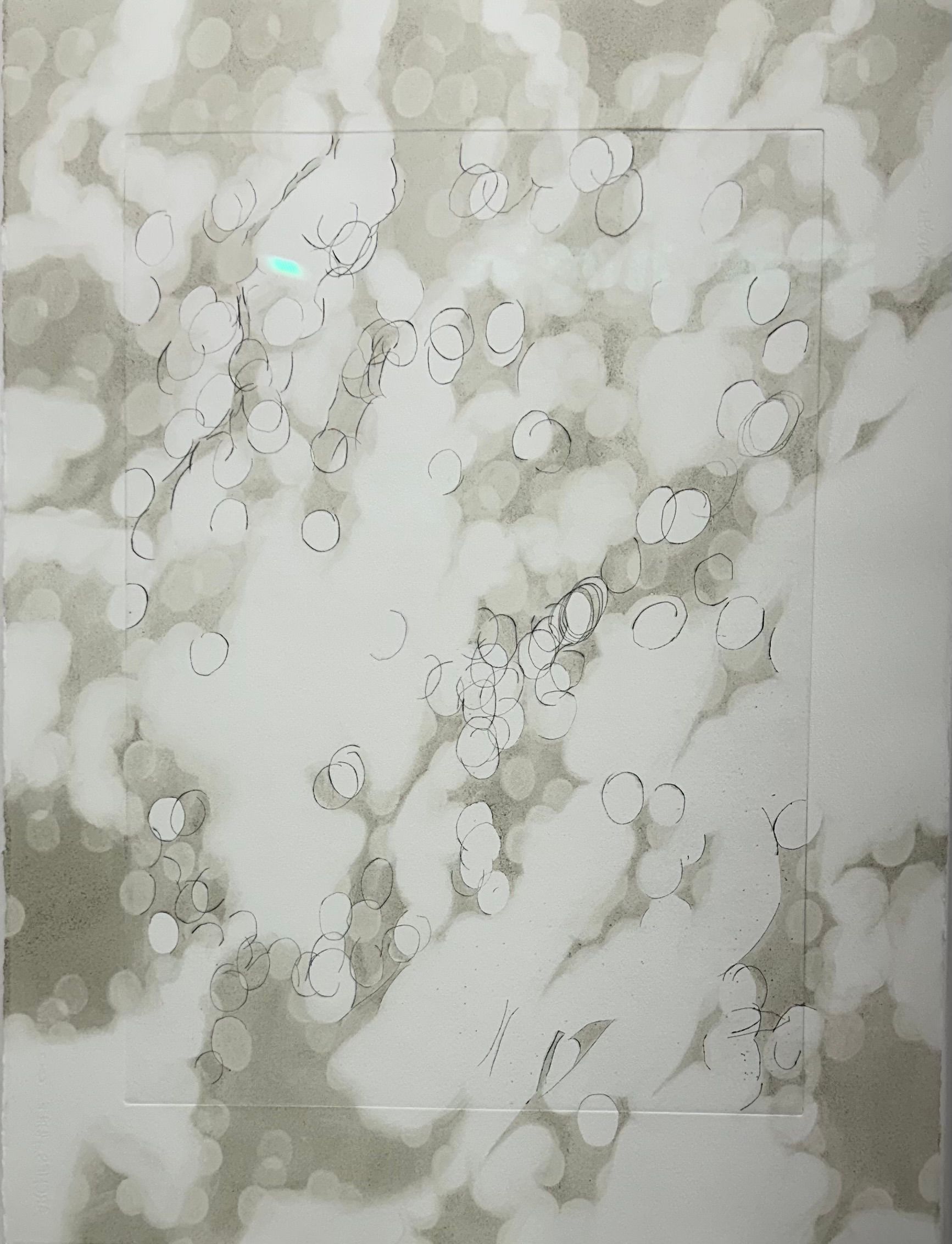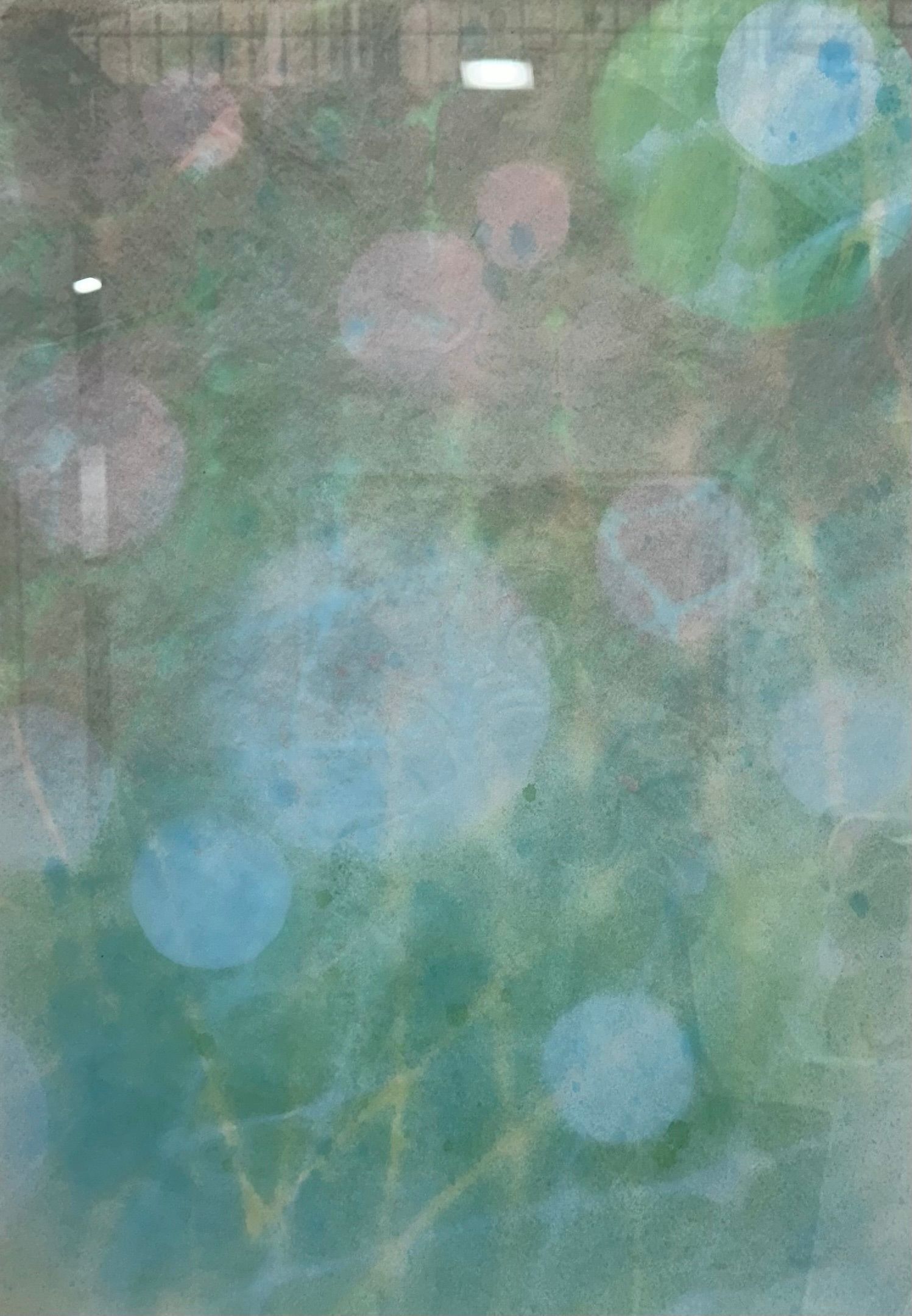 A few steps further, Sophie Bouvier Ausländer's watercolour asks nothing of you. Green and blue, forms that float and dissolve, no fixed edges. I didn't try to understand it. I just looked. There's a kind of lightness that isn't indifference — this was it.